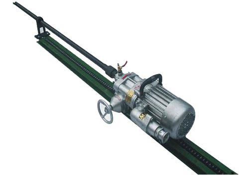 KHDY型礦用電動(dòng)巖石鉆(以下簡稱鉆機(jī))系鉆巖石爆破孔的一種工具。 1.鉆機(jī)可用鉆架配合,可水平向前或傾斜向上等任意方向鉆孔,也可垂直向上。 2.為了延長鉆頭的使用壽命及改善操作者的勞動(dòng)條件,采用濕式鉆孔水排粉,也可采用螺旋葉片鉆桿干式排粉。 3.鉆機(jī)在作業(yè)中,只須操縱手輪,鉆機(jī)即可自行推進(jìn)和快速退回。 4.配用直徑80麻花鉆桿或者直徑34圓鉆桿,塔形鉆頭。